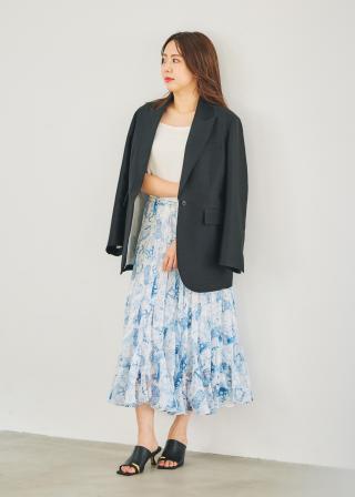 シアーなスカート合わせで、軽さのある春らしい雰囲気で着用いただけます。