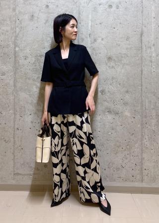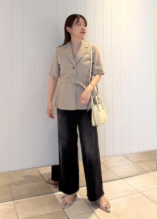 ウエスト部分を少しシェイプしたジャケットはパンツ合わせでもレディライクなスタイルが完成。