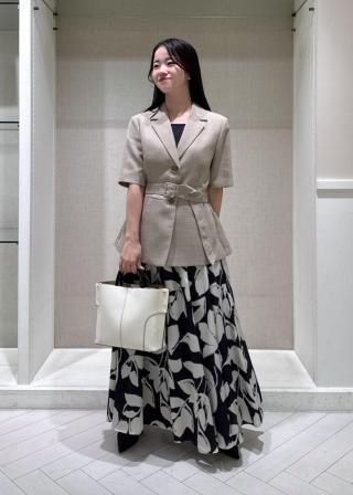 ポリエステル100%でリネンのようなサッパリ感のあるジャケットです。比較的コンパクトなサイズ感ですが着丈はヒップが隠れるほどあります。ベルトの付け外しできちんと感のある着こなしも、カジュアルにも着用できます。