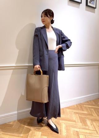 同素材のスカートとセットアップで着用すれば、きちんと感のあるスタイルに。デニムのセーラーパンツと合わせた、大人カジュアルの着こなしもおすすめです。