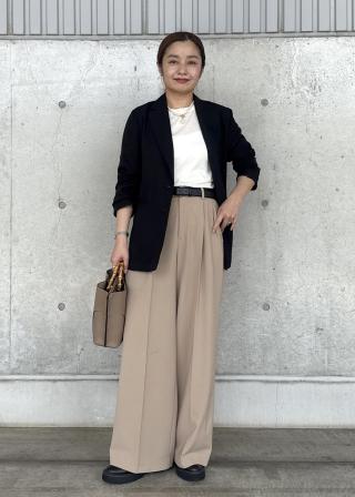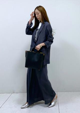 同素材のスカートとセットアップで着用すれば、きちんと感のあるスタイルに。デニムのセーラーパンツと合わせた、大人カジュアルの着こなしもおすすめです。