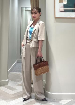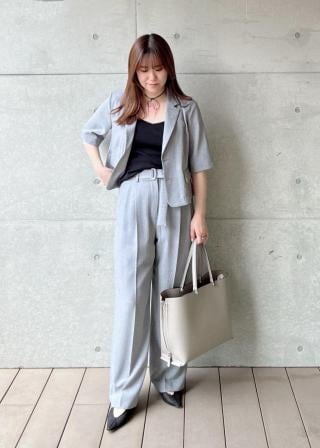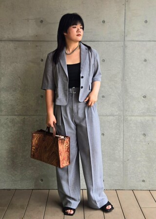 半袖ジャケットが欲しくて出会いました。私は低身長なので、短丈なのも嬉しいポイント。顔映り的にいつもはグレーカラーを選ぶのですが、かっちり度高めの印象になりましたので、可愛らしさを感じるベージュにしました。黄みがないベージュで顔映りも◯、霜降り調の素材も表情があり素敵です。セットアップ着用でも可愛い、カジュアルボトムに合わせても可愛いです。着用するだけで、即旬顔になります。