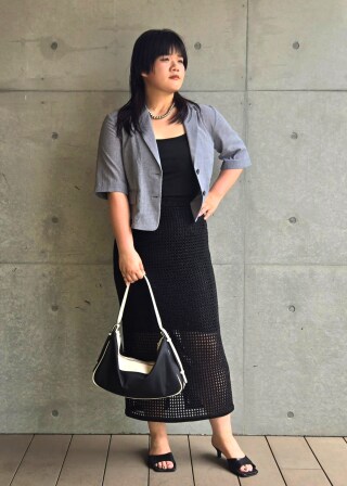 短丈ですが腰にかかるくらいなので短くなりすぎず、ロングワンピースやフレアスカートにも相性バッチリです◎