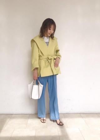 ナロウなスカートスタイルやツヤのある素地のストレートパンツ合わせがオススメ。ワンピースと合わせて女性らしいスタイルにもオススメです。