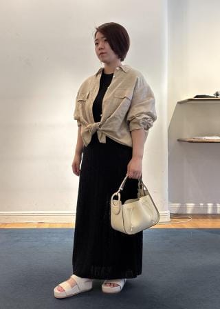 とても軽くさらっとした素材で、暑い夏にも見た目より涼しく着られそうです。ピッタリしすぎないシルエットで綺麗です。