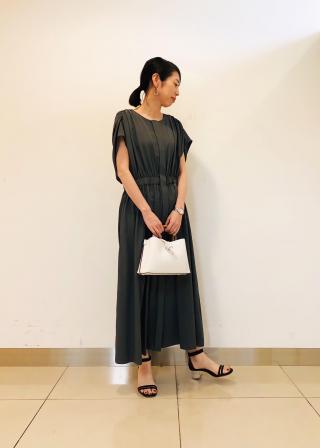 一枚で着ると綺麗めになりがちなワンピースをカジュアルダウン出来ないかと思い、ざっくりしたカーディガンやスニーカーを合わせました。他にも前ボタンを開けて羽織りにしたり、中にデニムパンツを合わせてレイヤードを楽しんでもいいと思います!