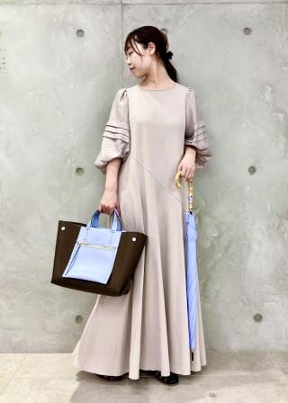 ワンピースの袖ボリュームがふんわりとしていてとても可愛いので、首元にスカーフやアクセサリー、バッグ等小物をプラスするとオシャレに決まりますよ。