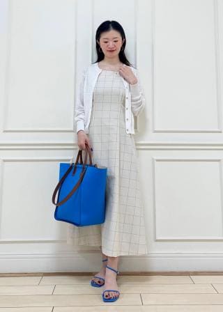 ウエストシェイプしたスクエアネックのIラインワンピース。ミニマムなデザインながらスタイルよく着用でき、襟ぐりのあきも美しくエレガンスな着こなしを演出してくれます。素材に清涼感があり、夏の1枚着としておすすめのワンピースです。