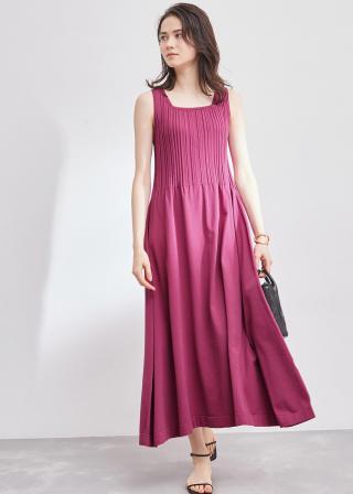 昨年好評だったニットワンピースをデコルテが綺麗にみえるスクエアーネックに。ショルダースナップを肩の裏側に付ける事でインナーのストラップが見えてしまうストレスを解消します。身頃がランダムリブ、スカート部分が天竺というニットならではのテクニックを用いたワンピース。トップはフィットしてスカート部分に綺麗なフレアーが出ます。長すぎない着丈で小柄な方でも決まるワンピースです。