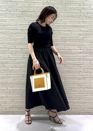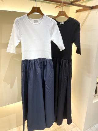 リブニット×タフタコンビワンピース