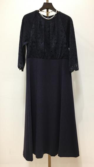 【セレモニー対応】レース切り替え トリアセテートワンピース