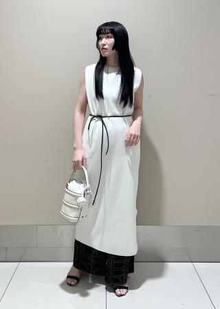 同シリーズのジャケット(品番:GGK24200)とのセットアップも一枚でさらっと着ていただくのも素敵です。スリットがあるのでパンツとレイヤードしてフラットサンダルを履くスタイリングもおすすめです。