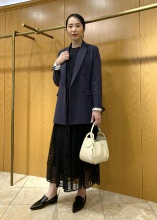 衿周りがすっきりしているのでインナーにタートルインナーを着たり、紺ブレなどのかっちりとしたジャケットを着たりしてシーンに合わせたレイヤードスタイルオススメです。