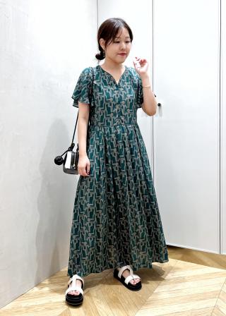 【DEVEAUX】プリントフレアスリーブワンピース
