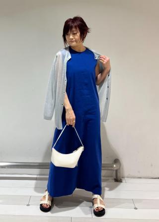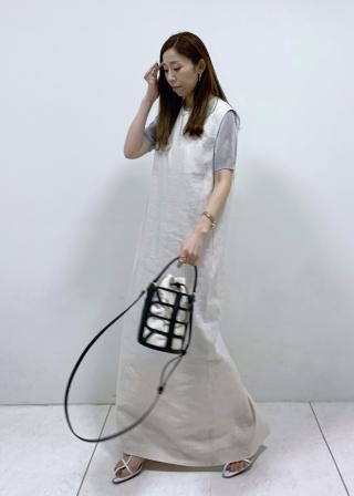 1枚着で着て様になるワンピースは、足元はフラットサンダルがオススメです。シンプルなのでネックレスやバングルなどのアクセサリーが映え、雰囲気やシーンに変化を与えられる万能なワンピースです。アイスコットンやラメのカーディガン、シャツ、ジャケットやジレまで色々な羽織りとも相性が良く着こなせます。