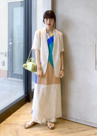背中の開きがポイントなのでTシャツやバンドゥ、タンクトップと重ねたヘルシーな着こなしがオススメです。カラフルなカラーを引き締めるブラックとの相性も良いのでインナーやサンダルに取り入れて。ワンピースの羽織りにシアーやリネンのシャツを合わせるのも◎