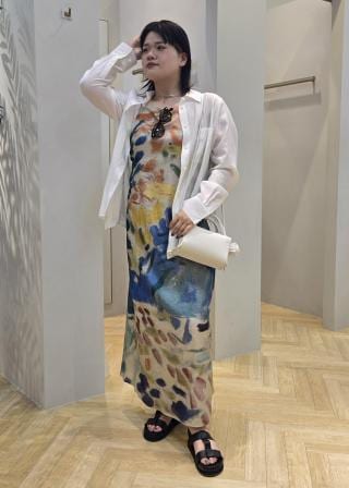 ジャンパースカート感覚で着られるキャミソールワンピース。柄が主役になれるミニマルなフロントデザイン。後ろウエスト部分はゴムでギャザーを入れ身体に吸い付くようにしています。細く繊細な肩紐は後ろの結び目で調整ができるので着丈の微調整も可能に。