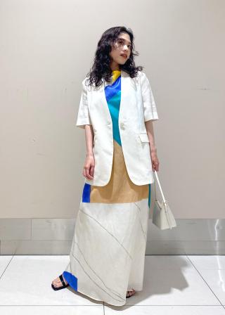 ベアトップやTシャツなど合わせるのも素敵です。