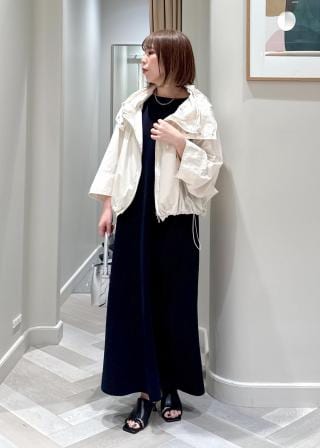 同シリーズのジャケットとのセットアップも一枚でさらっと着ていただくのも素敵です。マキシ丈なので足元は軽くフラットサンダルを履くスタイリングもおすすめです。
