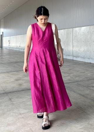 夏の1枚着として、スニーカーでもパンプスでも決まるシルエット。