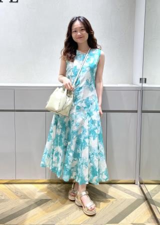程よくウエストシェイプさせ、裾にまちをいれ分量感を出したワンピースです。ウエスト位置を少し高めに設定し、スタイルがよく見えるようにしています。