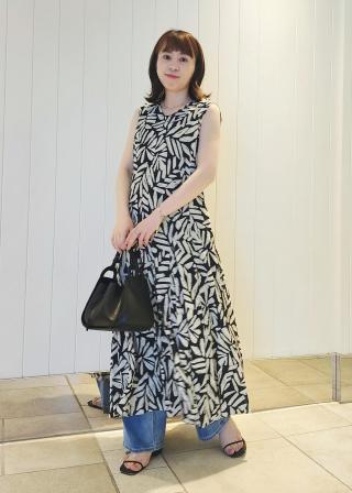 夏の1枚着として、スニーカーでもパンプスでも決まるシルエット。
