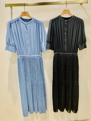 フラワージャカードプリーツワンピース