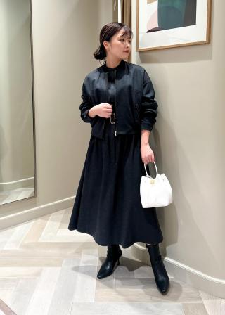 ボリュームのあるワンピースなので、重めのブーツでカジュアルスタイルでも、タイツにパンプスでキレイメオンスタイルでも。粗野な素材感なのでアクセサリーやストール等の華やかアイテムを加えて。