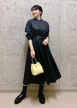 ボリュームのあるワンピースなので、重めのブーツでカジュアルスタイルでも、タイツにパンプスでキレイメオンスタイルでも。粗野な素材感なのでアクセサリーやストール等の華やかアイテムを加えて。