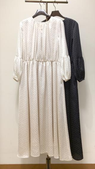 お食事やお出かけが増える年末に向けてぴったり。艶と程よい落ち感が甘すぎない大人のドットワンピース