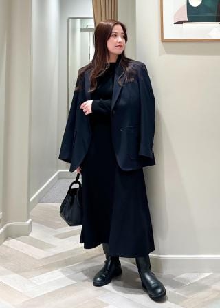 ロングブーツにリバーコートを羽織ったシンプル合わせでスタイリングが決まります。ベルトを付けたり、スカーフをプラスすると、より新鮮なスタイリングになります。1枚着でもOKなので、ホリデーシーズンに華やかなワンピースの着こなしを楽しんで。