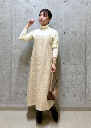 1枚着としてもパンツとのレイアードにもできるワンピース、インナーにライトなニットやカットソー素材がおすすめ。