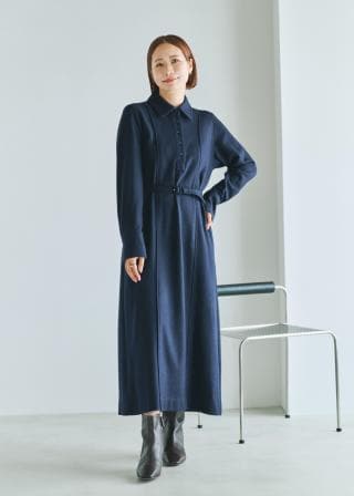 きちんと感のある襟付きデザインに、フロントボタンがアクセントのウールジャージーワンピースです。フロントのデザインがブザムシャツ(ボザムシャツ)のような切り替えになっていて、きれいめな印象に。シンプルながらもクラシカルな印象で、1枚で上品に着こなせます。ゆとりのあるシルエットで着心地も快適です。お仕事やオフィスカジュアルにも、お出かけにも、さまざまなシーンで活躍する1枚です。