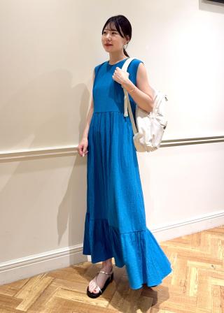 リネン混サッカー素材で涼しく夏にオススメのワンピースです。