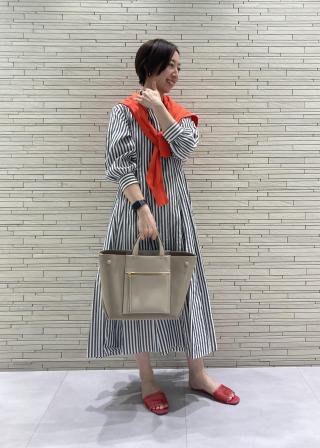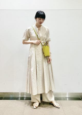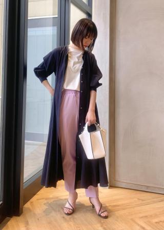 足元にはヒールやサンダルで軽さを出し、上からショートカーディガンでショートアンドフレアーのシルエットバランスがおすすめのコーディネイト。首元にはアクセサリーで華やかさをプラスしてください。オフィスカジュアルなどお仕事シーンでも、お出かけのシーンでも使いやすいワンピースです。