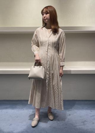 スキッパーシャツ風フレアーワンピース(ストライプ2色/無地)