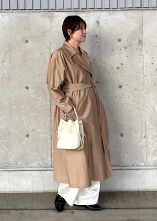 同素材のブラウスとあわせたスタイルや、透かし編みのニットと、オーセンティックなトレンチコートとあわせたスタイリングもおすすめです。
