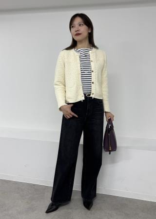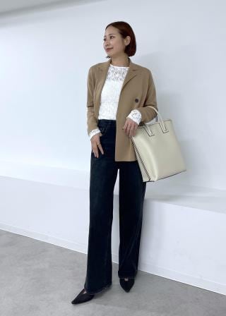 ニットトップスやTシャツに合わせたカジュアルなスタイリングがおすすめ。