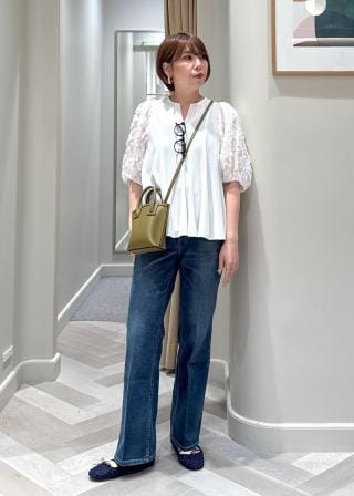 シャツブラウスやTシャツに合わせたカジュアルなスタイリングがおすすめ。