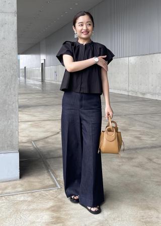 カジュアルにもきれいめにも着用できるデニム素材なので、カジュアルなジレと合わせても、きれいめなブラウスとあわせても決まるデザインです。