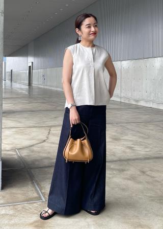 カジュアルにもきれいめにも着用できるデニム素材なので、カジュアルなジレと合わせても、きれいめなブラウスとあわせても決まるデザインです。