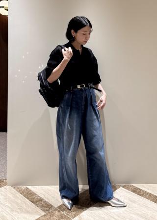 ワンタック入っているので、体のラインも拾いづらいワイドシルエットなデニムです。