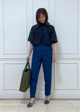 ニットやブラウスに合わせて着用して頂くのがおすすめです。細身のシルエットなのでどんなスタイルにも合わせやすい一着です。
