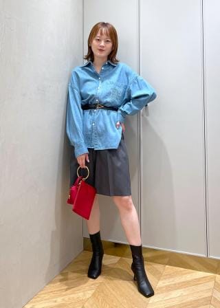 セットアップで着用だけでなく、ブラウスやニットとの合わせも。カラータイツやロングブーツでモダンなスタイリングがおすすめ。