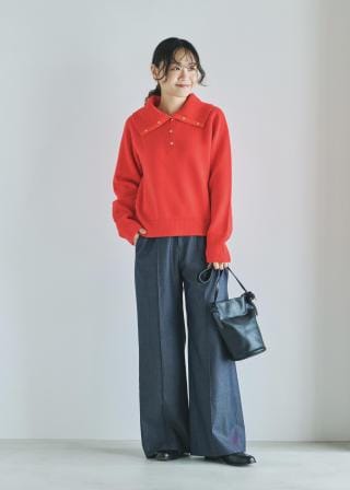 ツイードジャケットやニットジャケットなど、コンパクトなつくりのアイテムと相性が良いです。