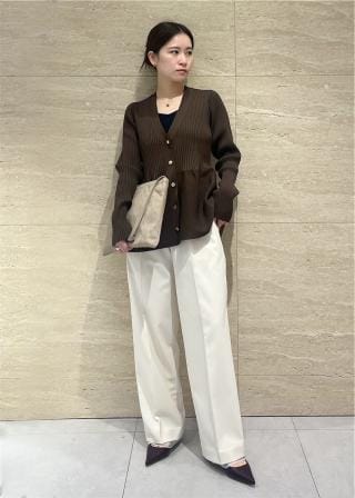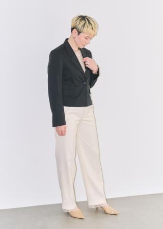 シルエットはストレートで、ウエストにワンタック入るので、身体のラインを拾いすぎず、すっきりした見え方になります。