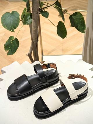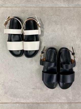 大ぶりのバックルと太めのベルトで足元に程よいボリュームをプラスしてくれる1足です。ふんわりしたスカートやワンピースを程よくカジュアルアップしたり、ワイドパンツにクールに合わせたり、スタイリングを楽しめるアンクルストラップのレザーサンダルに仕上げました。ライニング側にキャメルのカラーを効かせることで、脱いだ時にもバイカラーが可愛いデザイン。自然に足へフィットするフットベッドを使用し、長時間歩いても疲れにくい履き心地にしています。アウトソールはEVAソールを積み上げています。程よい高さのプラットフォームで歩きやすくさとヒールアップが期待できる1足です。