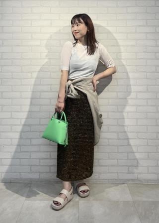 大きめのサークル状のバックルはゴールドを効かせ、綺麗めなスタイルに程よい外しのアイテムとしてコーディネートしていただけます。