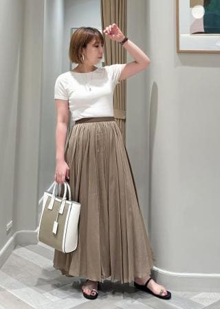 一枚で主役になれるスカートなので、シンプルなTシャツやブラウスと合わせていただけるだけでスタイリングが完成します。