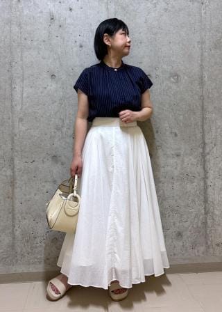 分量をたっぷりとったサーキュラースカートで、軽さとドレープ感といった素材の特性が最大限に活かされたアイテムとなっています。